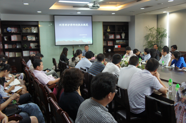 培訓(xùn)中,潘律師以刑事辯護規(guī)范、辦理刑事案件過程中常出現(xiàn)的問題為主線,講述了新刑訴法背景下,律師工作須注意的細節(jié)。特別是律師在偵查階段介入刑事案件應(yīng)起的作用,他以詼諧、通俗的表達風(fēng)格,結(jié)合自身從業(yè)經(jīng)歷和辦案體會進行了非常專業(yè)的解讀。隨后,他又從量刑辯論、未成年人特殊保護以及刑事和解等律師較容易忽視的問題進行了探討和指點。