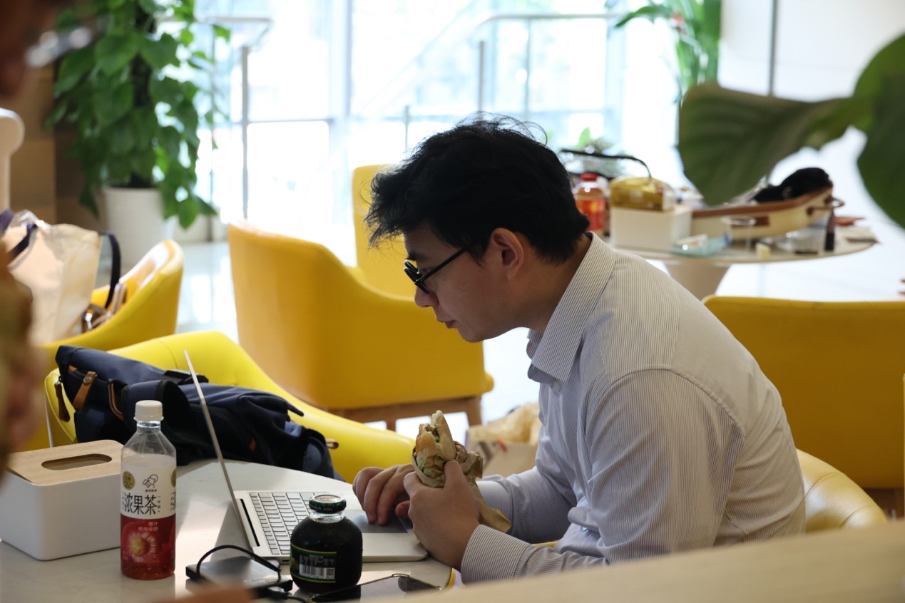 (圖為比賽現場男律師團員抽空辦公)