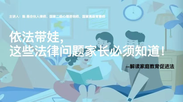 上海捷銘律師事務所陳燕律師,在涼城街道和曲陽街道舉行題為:“依法帶娃,這些法律問題家長必須知道--認識《家庭教育促進法》”普法宣傳講座。家庭是第一個課堂,家長是第一任老師,孩子人生的第一粒紐扣如何扣好,是家長作為家庭教育的直接實施主體需要學習的。當家長需要切實承擔未成年人家庭教育主體責任,如何依法帶娃,成了新課題。