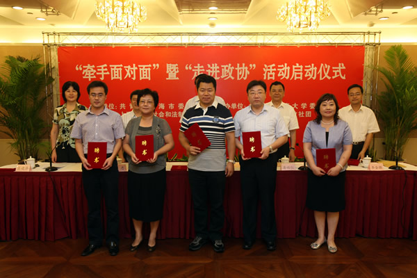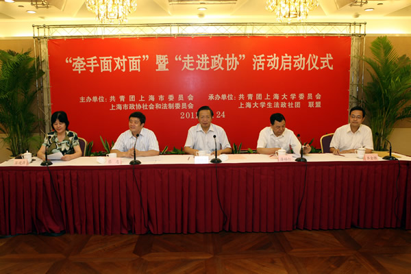 2011年8月24日,市政協(xié)與市團(tuán)委在市政協(xié)文化俱樂部聯(lián)合舉辦了“牽手面對(duì)面”暨“走進(jìn)政協(xié)”活動(dòng)啟動(dòng)儀式。市政協(xié)常委、社法委主任繆曉寶、市政協(xié)常委、常務(wù)副主任潘福仁、市律協(xié)副會(huì)長、市政協(xié)常委、社法委副主任黃綺、市團(tuán)委黨組成員、市社區(qū)青少年事務(wù)服務(wù)中心主任蔡忠、市團(tuán)委權(quán)益部部長王峰、上海大學(xué)法政社團(tuán)聯(lián)盟及大學(xué)生、律師等80余人參加了會(huì)議。在這次會(huì)議上,市政協(xié)常委黃綺律師、市律協(xié)參政議政促進(jìn)委員會(huì)主任、市政協(xié)委員游閩鍵律師、市政協(xié)委員林莉華律師、市政協(xié)委員胡光律師、市政協(xié)委員張毅律師等被聘為“上海青少年權(quán)益使者”。