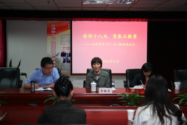 4月26日下午,為紀(jì)念中國(guó)共產(chǎn)主義青年團(tuán)成立91周年、“五四”運(yùn)動(dòng)94周年,向廣大青年律師深入宣傳十八大精神,區(qū)司法局組織本系統(tǒng)團(tuán)員青年召開了主題為“感悟十八大 青春正能量”的座談會(huì),來自局機(jī)關(guān)、法援中心、公證處和各律師事務(wù)所近50多名青年參加,區(qū)司法局黨委副書記、律師黨委書記王梅萍出席座談并講話。