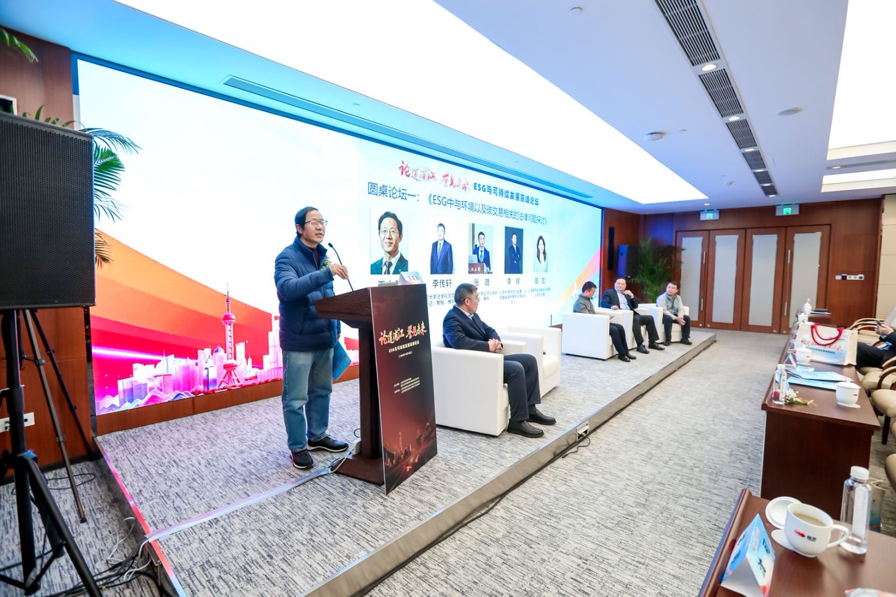 權威專家意見解讀后,是兩場深度研討聚焦ESG核心議題。第一場圓桌論壇以《ESG中與環境以及碳交易相關的法律問題探討》為主題,由上海政法學院經濟法學院院長、教授、博士生導師王文革主持,復旦大學法學院黨委副書記、教授李傳軒,華東政法大學經濟法學院教授張璐,上海律協監事、上海理誠律師事務所合伙人李鑌,上海聚秀永續碳科技有限公司總經理陸玄,圍繞碳交易合規邊界、環境損害賠償機制、綠色技術應用法律保障等議題展開熱議,提出了一系列兼具操作性的專業建議。