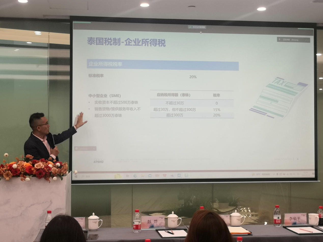 茶歇交流過后,畢馬威中國稅務合伙人肖鑫先生以“泰國財務稅務制度介紹”為題,針對泰國企業所得稅、增值稅、與他國協定稅率、轉讓定價以及BOI優惠政策,詳細介紹了中國企業對泰投資中需要了解的稅務要素,并建議企業需要從境內外不同維度對稅務問題進行考量和決策。