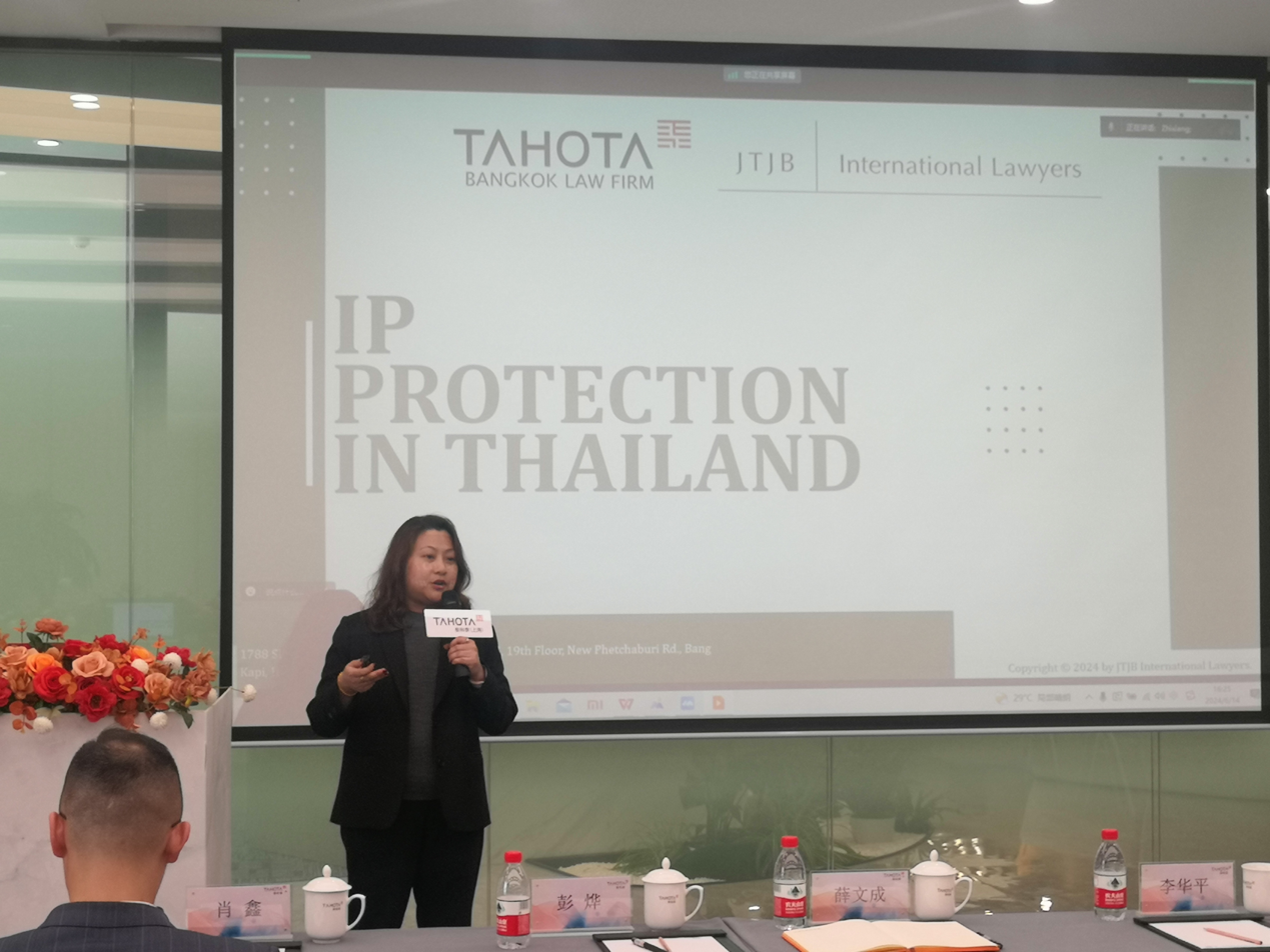 JTJB International Lawyers Partner合伙人Pattaravadee Kongcharoenniwat律師和泰和泰(上海)律師事務所合伙人、知識產權部主任應瑩律師共同就“IP Protection in Thailand(泰國知識產權保護實踐)”展開研討,共同介紹了泰國知識產權基本法律制度、專利、商標、著作權的區分、維權路徑,以及與國內知識產權保護體系的異同。