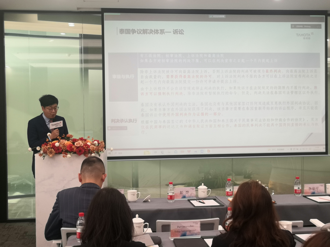 最后,泰和泰(上海)律師事務所合伙人、涉外業務部主任胡憲律師就“涉泰國投資保護與爭議解決”為題向與會嘉賓詳細介紹了泰國外商投資法律框架及訴訟、仲裁、調解,并結合中泰BIT和《中國東盟投資協定》對其中可能涉及的投資者與東道國之間的糾紛提出了自己的見解。