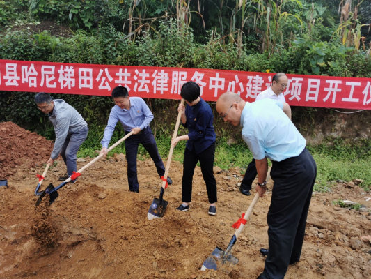 此外,考察組還在新街鎮參加了由徐匯區司法局、元陽縣哈尼梯田公共法律服務中心開工儀式,元陽哈尼梯田公共法律服務中心項目建設將惠及新街鎮及哈尼梯田核心區的34個村委會2個社區225個自然村,惠及建檔立卡貧困戶9120戶41779人,將為梯田核心區常住人口和流動人口提供法治宣傳、涉外法律服務等公共法律咨詢服務。