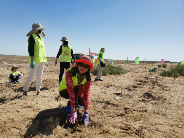 6月8日,所有的志愿者不顧旅途的疲倦,積極參與植樹活動。經過近3個小時的植樹活動,大家不僅成功種植梭梭樹近850棵,更種下荒漠沙綠洲的希望!