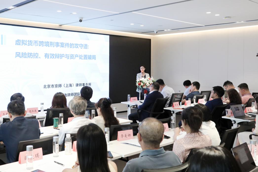 京師上海律所合伙人、京師律所(全國)刑委會數字經濟犯罪研究中心主任霍惟迪的分享主題為《虛擬貨幣跨境刑事案件的攻守道:風險防控、有效辯護與資產處置破局》。霍惟迪律師提出虛擬貨幣去中心化、技術復雜性和跨境流通性三大特征使其天然易被犯罪利用,并結合數據剖析了虛擬貨幣犯罪案件的痛點及處理方法。她梳理了部分國家和國際組織針對虛擬貨幣的監管政策,重點總結了我國虛擬貨幣涉嫌犯罪的主要情形和相關罪名。在辯護思路方面,霍律師從法律屬性、主觀明知、取證審查、跨境管轄、罪名競合、政策結合六大維度展開討論,并圍繞具體罪名分享了辯護破局思路。隨后,她從傳統處置路徑的困境、北京模式、香港的“三重接口”功能出發,探析了涉案虛擬貨幣跨境處置創新路徑的挑戰及未來優化。最后,霍惟迪律師分享和發布了其團隊打造的法律服務產品“跨境虛擬貨幣刑事風險與辯護一站式法律服務”,詳細介紹了其產品內容、特色、服務對象及優勢。