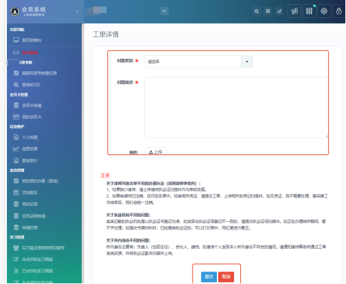 律師、律所也可在會員系統中提交技術咨詢工單,技術將在1-2個工作日內完成回復處理。