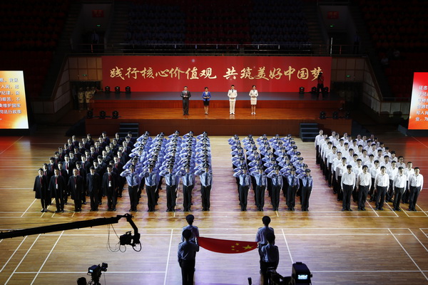 9月25日, 市司法局在虹口精武體育館成功舉辦了以 “踐行核心價值觀 共筑美好中國夢”為主題的本市司法行政系統綜合匯演,并發布了上海司法行政之歌。市委常委、市委政法委書記姜平同志出席并觀看了演出,市司法局局長鄭善和率全體領導班子成員出席了活動。