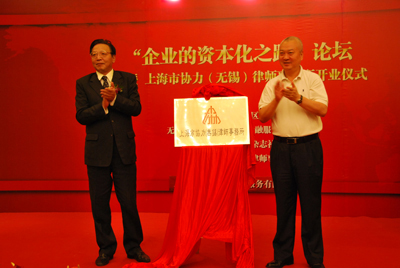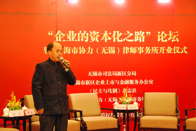 2012年10月12日,“企業的資本化之路”論壇暨上海市協力(無錫)律師事務所開業儀式在風光旖旎的太湖之濱——無錫新區鉑爾曼大酒店隆重舉行。