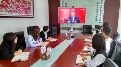 黃浦區內的各律師事務所都組織了黨員和群眾觀看開幕式實況,大家對總書記振奮人心的講話備受鼓舞,一致認為黨的十八大以來,在習近平總書記系列重要講話精神和治國理政新理念新思想新戰略引領下,有中國特色社會主義的偉大事業取得前所未有的巨大進步,提出了馬克思主義最新理論成果,在黨的領導下全面依法治國和依規治黨讓法律人看到了專業報國和法治效國的巨大舞臺,我們要堅持把改革進行到底,在實踐中不斷彰顯和激發中國特色社會主義司法制度的優越性和生命力,我們要在以習近平總書記為核心的黨中央堅強領導下,不忘本來,吸收外來,面向未來,繼續奮發有為、只爭朝夕,在實現中華民族偉大復興的中國夢征途上繼續與時代同行!
