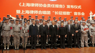 12月22日下午,上海市律師協(xié)會(huì)主辦的《上海律師社會(huì)責(zé)任報(bào)告》發(fā)布儀式暨上海律師合唱團(tuán)“長(zhǎng)征組歌”音樂會(huì)在上海音樂學(xué)院賀綠汀音樂廳盛大召開。出席本次活動(dòng)的有市人大常委會(huì)委員、市人大內(nèi)司委主任委員史秋琴、市司法局黨委書記、局長(zhǎng)陸衛(wèi)東、市司法局副局長(zhǎng)王協(xié)、市法學(xué)會(huì)專職副會(huì)長(zhǎng)施偉東、市律師協(xié)會(huì)會(huì)長(zhǎng)俞衛(wèi)鋒,以及來自市委政法委、市司法局、市律師協(xié)會(huì)、各區(qū)司法局、律工委的有關(guān)同志。全市律師代表及業(yè)內(nèi)外嘉賓共500余人參加了今天的活動(dòng)。