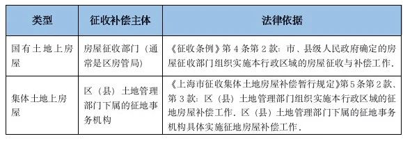國有土地與集體土地房屋征收存在很多不同之處,本文主要結(jié)合上海市的規(guī)定,介紹以下不同:
