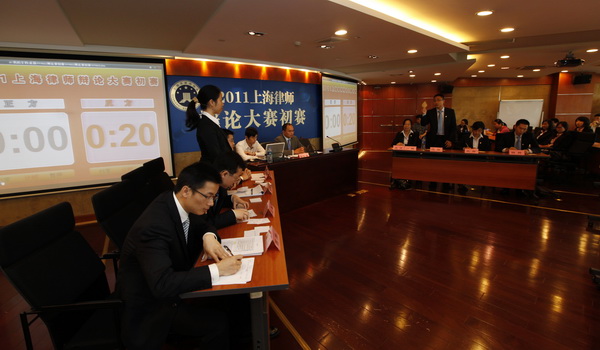 10月23日上午,市律協(xié)報(bào)告廳律師們濟(jì)濟(jì)一堂,上海律師辯論大賽初賽第三場正在這里緊張地進(jìn)行。