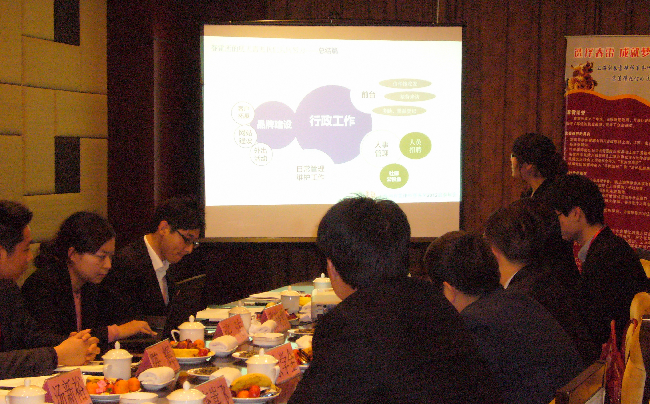 迎新年會上,黨支部書記葉萍律師從春雷榮譽、春雷業務、春雷管理三大板塊盤點2011年工作。