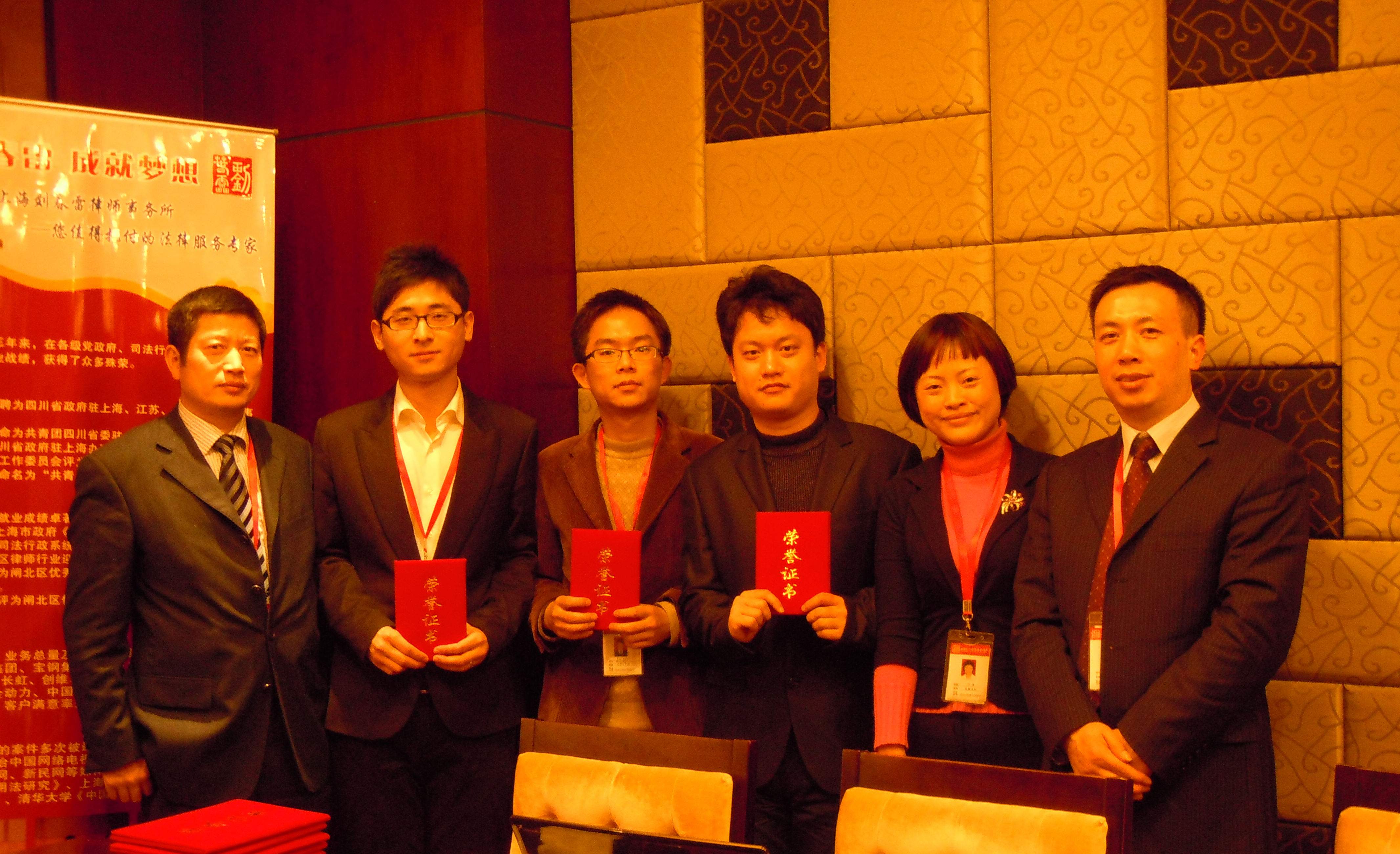 榮譽方面,春雷所碩果累累,喜訊連連。1、劉春雷主任榮獲司法部黨員律師標兵、2010年度閘北區優秀律師;2、葉萍律師榮幸當選閘北區第九次黨代會代表、上海市第九屆律師代表大會代表;3、黨支部被確定為閘北區法律服務系統“創先爭優”示范支部、榮獲閘北區兩新組織“五好”黨組織;4、榮膺中國低碳行動聯盟愛心會員單位、劉春雷主任出任該聯盟法律顧問;5、榮獲四川省人民政府2010年勞務維權工作二等獎,被確定為華東三省一市法律援助站;6、團支部被推薦為四川省五四紅旗團支部。