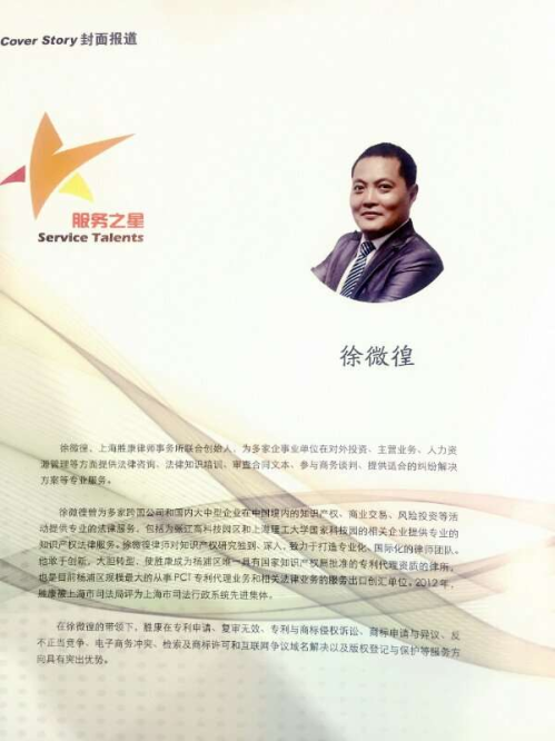 4月26日,2017年上海知識(shí)產(chǎn)權(quán)園組織的“知識(shí)產(chǎn)權(quán)服務(wù)宣傳周”活動(dòng)在長(zhǎng)陽創(chuàng)谷舉行,上海勝康律師事務(wù)所徐微徨主任應(yīng)邀出席,并榮獲2016年度《上海知識(shí)產(chǎn)權(quán)》編輯推薦獎(jiǎng),榮膺“服務(wù)之星”稱號(hào)。