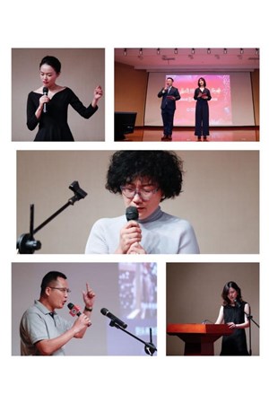 比賽間隙,孫渝烽老師為現(xiàn)場(chǎng)觀眾帶來(lái)了動(dòng)人的詩(shī)朗誦《你們和我們》,用鏗鏘有力又飽含深情的聲音表達(dá)了對(duì)青年人的期望和諄諄教導(dǎo)。白偉民老師則為大家?guī)?lái)了一場(chǎng)精彩絕倫的配音秀,用簡(jiǎn)單的道具當(dāng)場(chǎng)配出了動(dòng)畫(huà)片中的各種音效;同時(shí)還講述了自己的配音經(jīng)歷,揭秘了電影配音背后的故事,白老師風(fēng)趣幽默的語(yǔ)言藝術(shù)使得現(xiàn)場(chǎng)笑聲掌聲不絕于耳。