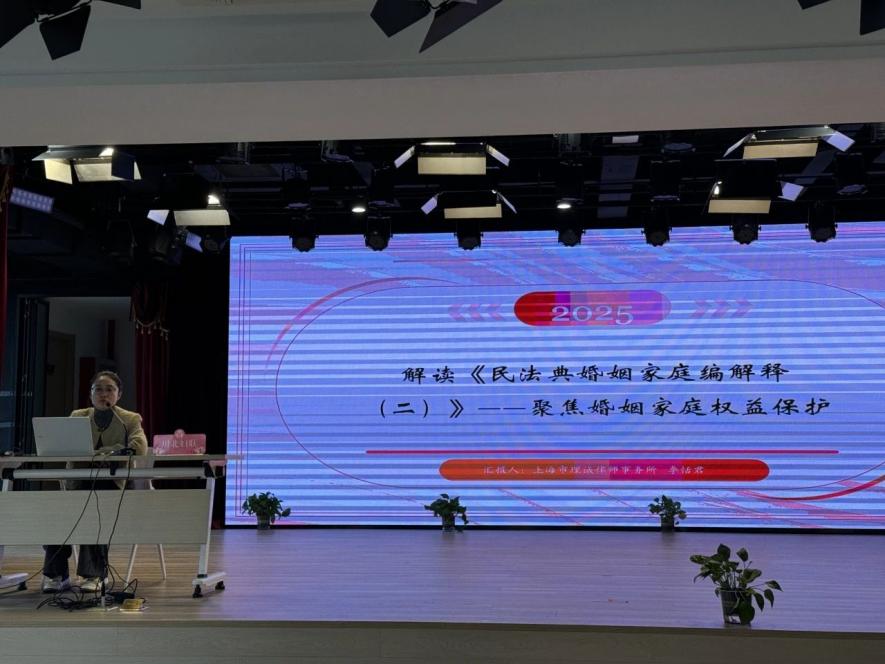 3月12日,上海理誠律師事務所李恬君律師受四川北路街道婦聯(lián)邀請,為社區(qū)的女性同胞以解讀《民法典婚姻家庭編司法解釋(二)》為主題,進行了普法講座,四川北路街道社區(qū)近40人參加。李恬君律師結合自己的專業(yè)知識和實務經驗,詳細講解了其中的關鍵的內容。重點從夫妻共同財產的界定與分割、子女優(yōu)先撫養(yǎng)的判定原則、婚姻家庭關系中的權益保護等方面,剖析了法律要點,并通過生動的案例讓聽眾更透徹理解法律規(guī)定。