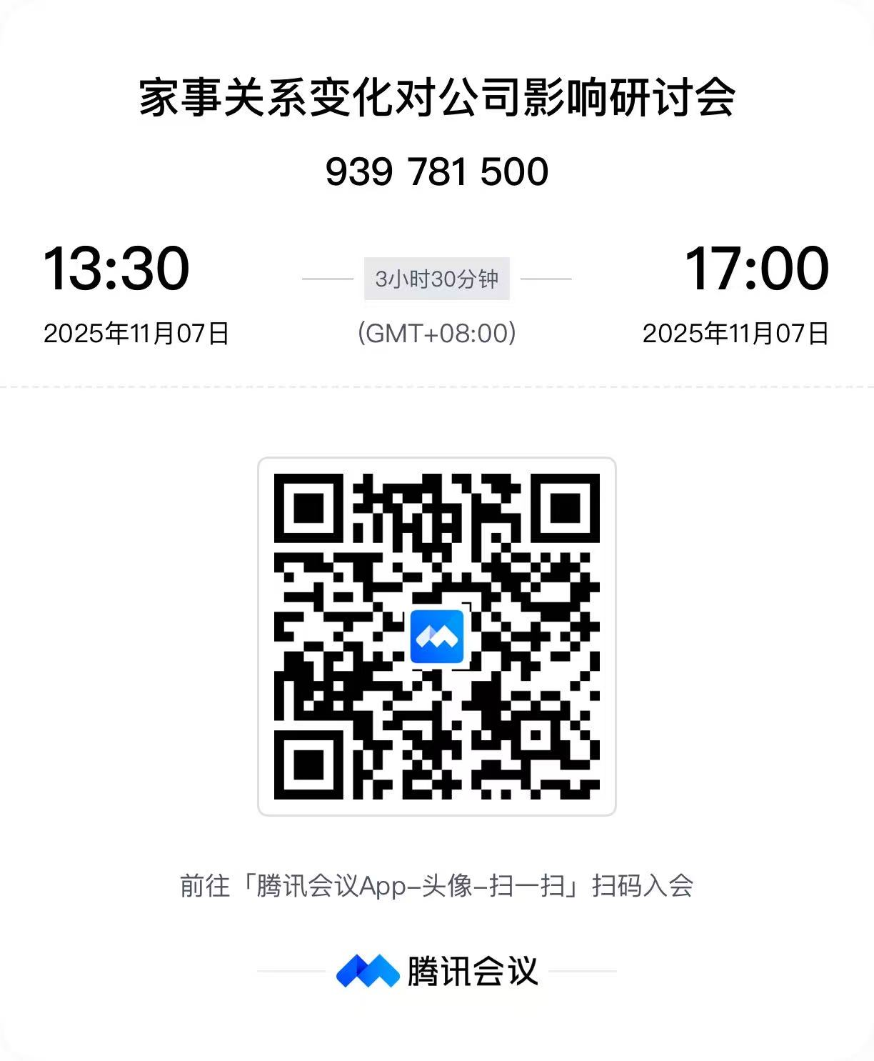14:20-15:00 主題分享二:《家事變動與公司控制權博弈及法律架構的規劃》