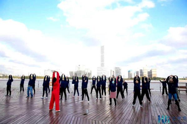 活動的第二部分是學習中華武藝精髓“氣功八段錦”。“八段錦”,是我國優(yōu)秀的傳統(tǒng)保健功法,它動作簡單易行,功效顯著。古人把這套動作比喻為“錦”,意為動作舒展,如錦緞般優(yōu)美柔順。此次執(zhí)教的是匯律師太極社長期合作的教練,陳氏太極傳人魏金華。魏教練鏗鏘有力的招式講解,配以柔中帶剛的身姿,很快引領眾學員漸入佳境。律師們個個精神奕奕且領悟力都超快,兩遍八段錦打下來,已像模像樣,在這風生水起的徐匯濱江江畔,宛如一個個武俠中的傳奇人物。