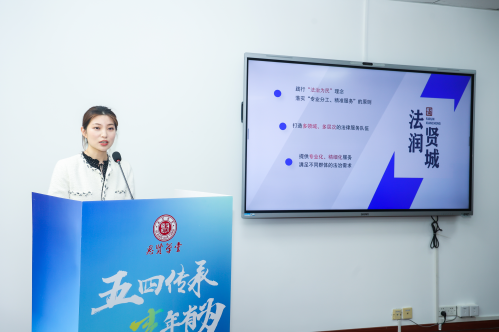 奉賢區司法局青年、賢城公共法律服務志愿團成員洪陳如愿介紹志愿團有關情況。