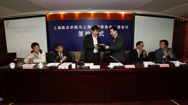 上海政法學院金國華院長在致辭中強調:2013年9月,習近平總書記在上合組織比什凱特峰會上對外宣布“將在上海政法學院建立‘上海合作組織國家司法交流合作培訓基地’”。這既是對上海的厚望,也是對上海的重托。上海政法學院愿意與長期保持密切合作的上海律協分享光榮,共擔使命,我衷心希望,通過與律協的全面合作,打開“培訓基地”建設新通途。基于此種理念,我校與上海市律師協會將展開包括科研、教學、實踐在內的全方面合作,通過努力,相互促進,使我們共同前進。