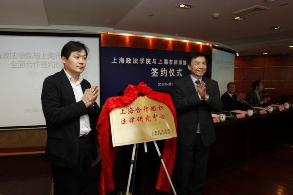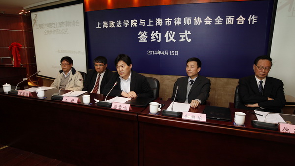 4月15日下午,上海市律師協會與上海政法學院在律師協會報告廳聯合舉行全面合作簽約儀式暨上合組織法律研究中心研討會。市律師協會秘書長萬恩標主持了簽約儀式,市律師協會會長盛雷鳴、上海政法學院校長金國華出席了簽約儀式,并分別代表市律師協會和上海政法學院在《上海政法學院與上海市律師協會全面合作原則協議》簽字。會議還宣告由上海政法學院、上海市律師協會共同組建的上合組織法律研究中心成立,并舉行了上合組織法律研究中心揭牌儀式。會上,市律師協會會長盛雷鳴、上海政法學院校長金國華分別作了熱情洋溢的講話。