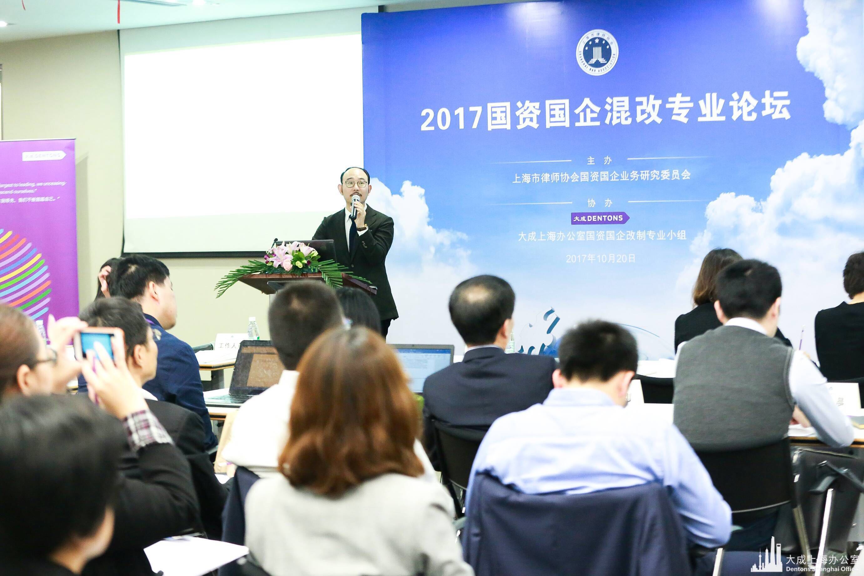 2017年10月21日下午,市律協國資國企業務研究委員會在大成(上海)律師事務所會議室舉辦 “2017國資國企混改企業專業論壇”。上海市國資委政策法規處處長鐘可慰、上海聯合產權交易所多名領導、滬上多家國企高管、市律協國資國企業務研究委員會主任洪亮律師、副主任徐宇舟律師、丁國利律師、王棟律師及多位委員近100人參加了論壇。論壇由市律協國資國企業務研究委員會副主任王棟律師主持。