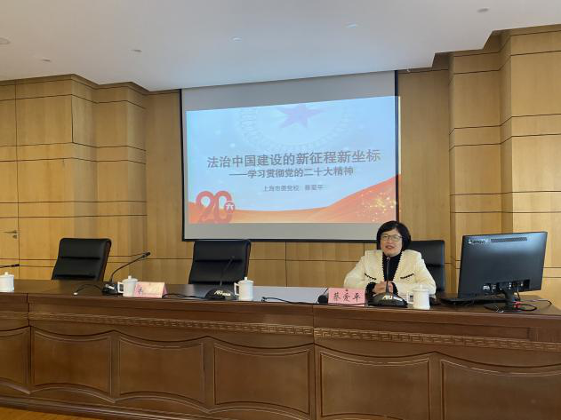 培訓班邀請上海市委黨校蔡愛平副教授,以法治中國建設的新征程新坐標為主題解讀了二十大法治精神。蔡教授圍繞法治中國建設踏上新征程、在法治軌道上全面建設社會主義現代化國家、開創法治中國建設新局面等3個方面系統闡述了二十大習近平法治思想的內容。