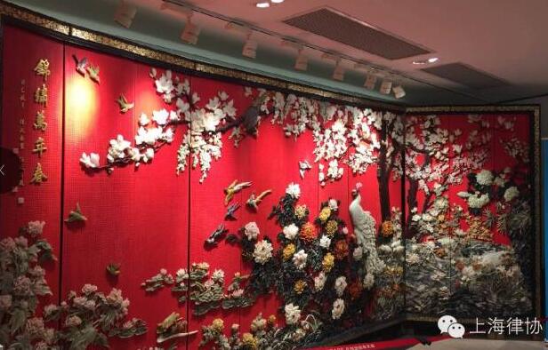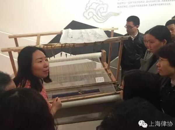 第二部分是參觀活動。朵云軒電子商務有限公司副總經理傅海英帶領律師們詳細參觀了在藝術中心參展的非遺作品,為大家一一詳細介紹了織造技術、顧繡、玉雕、竹刻等各個系列作品的歷史沿革、精細工藝以及創作它們的大家,讓參觀的各位更加深入地體驗和了解中國的非物質文化遺產,體會我國深厚的文化底蘊。