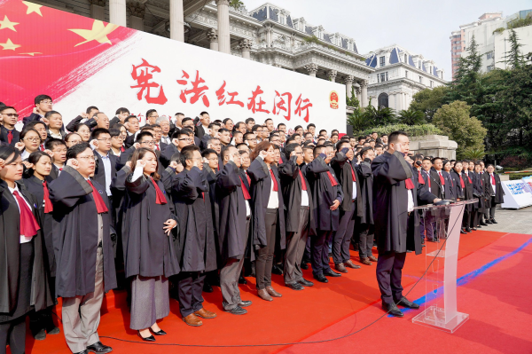 為引導(dǎo)廣大律師牢固樹立做中國(guó)特色社會(huì)主義法治工作者的信念,增強(qiáng)律師的職業(yè)使命感、榮譽(yù)感和和社會(huì)責(zé)任感,展現(xiàn)律師隊(duì)伍良好精神風(fēng)貌。12月2日上午在閔行區(qū)人民法院南側(cè)國(guó)旗廣場(chǎng),由閔行區(qū)司法局、閔行律工委聯(lián)合組織全區(qū)律師在“憲法宣傳周”首日舉行集體宣誓活動(dòng)。閔行區(qū)法學(xué)會(huì)會(huì)長(zhǎng)、區(qū)委政法委副書記陶興煒,閔行區(qū)司法局黨委書記、局長(zhǎng)金海民,團(tuán)區(qū)委書記徐豪,市法學(xué)會(huì)會(huì)員部副部長(zhǎng)朱炯,區(qū)司法局黨委副書記、律師行業(yè)黨委書記周信根出席并參加了本次活動(dòng)。
