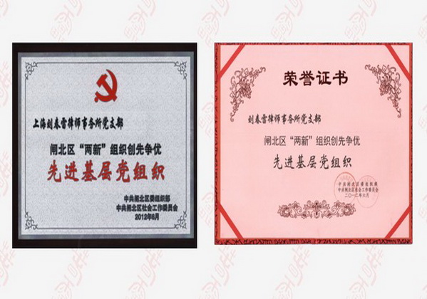 劉春雷所黨支部被確定為閘北區(qū)法律服務系統(tǒng)創(chuàng)先爭優(yōu)示范黨支部,榮獲閘北區(qū)兩新組織 “五好”黨組織、“創(chuàng)先爭優(yōu)”先進基層黨組織。