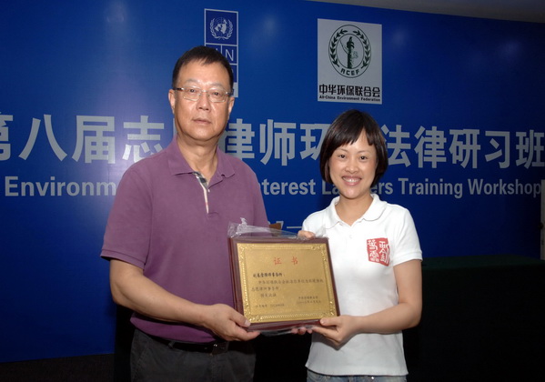 中華環(huán)保聯(lián)合會授予春雷所為環(huán)境維權志愿律所