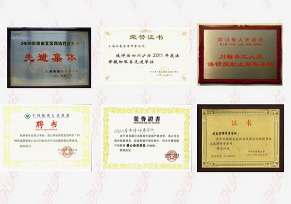 劉春雷所榮獲上海市律協(xié)通報表揚,被評為閘北區(qū)司法行政系統(tǒng)先進集體、閘北區(qū)優(yōu)秀律師事務所。被四川省人民政府確定為華東三省一市法律援助站,連續(xù)三年蟬聯(lián)四川省法律援助先進集體。