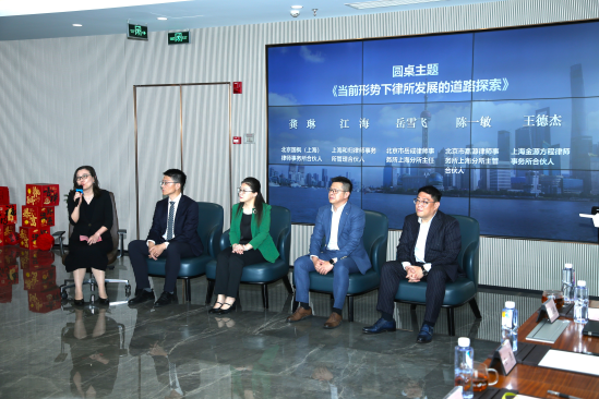 活動進入精彩的圓桌沙龍環(huán)節(jié)。在北京國楓(上海)律師事務(wù)所龔琳律師的主持下,來自上海和歸律師事務(wù)所主任江海、北京市岳成律師事務(wù)所上海分所主任岳雪飛、北京市嘉源律師事務(wù)所上海分所陳一敏律師、上海金源方程律師事務(wù)所合伙人王德杰,作為嘉賓圍繞“當前形勢下律所發(fā)展的道路探索”展開深入討論,就“律所管理體制”“渠道拓展”“細分行業(yè)選擇”“前瞻性需求準備”“律師培養(yǎng)”等熱點話題分享了真知灼見,現(xiàn)場氣氛熱烈。最后主持人龔琳律師總結(jié)指出,面對變革時代,律所需要保持戰(zhàn)略定力與戰(zhàn)術(shù)靈活性,在堅守專業(yè)本質(zhì)的同時積極擁抱創(chuàng)新。