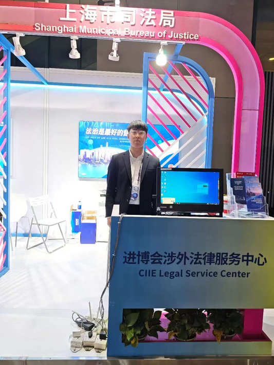 黃旻韡律師作為上海市司法局“進(jìn)博法律服務(wù)志愿團(tuán)”核心成員,駐守進(jìn)博會涉外法律服務(wù)中心,為海內(nèi)外展客商提供全方位法律咨詢、知識產(chǎn)權(quán)保護(hù)及營商環(huán)境政策宣介。他不僅高質(zhì)量完成現(xiàn)場咨詢?nèi)蝿?wù),更主動深入展館,為參展企業(yè)“把脈問診”,提供定制化法律解決方案。憑借敏銳的商業(yè)洞察力,黃律師成功撮合展商與投資方達(dá)成合作意向,協(xié)助招商團(tuán)隊(duì)推介上海“三化”營商環(huán)境,推動優(yōu)質(zhì)項(xiàng)目落地,實(shí)現(xiàn)從法律保障到價(jià)值創(chuàng)造的跨越。