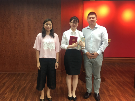 隨后,帶教律師們從30位學生完成的法律文書中評出了一等獎一位、二等獎兩位、三等獎三位,。共青團黃浦區委的周晶老師向獲獎同學頒發了獎狀,黃浦青律聯理事連晏杰律師向獲獎同學頒發了獎品。