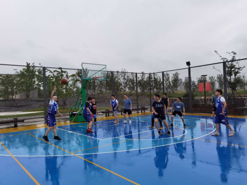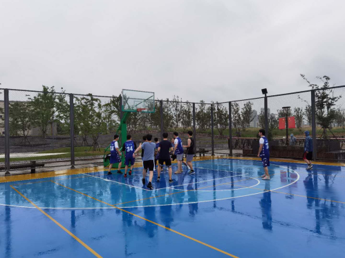 隨著裁判一聲哨響,比賽正式開始,雙方球員立即全身心投入比賽中。雖然比賽過程中時常下起小雨,但這完全不能澆滅雙方球員的比賽激情,雙方球員在保證安全的前提下在球場上盡情拼搏。整場比賽過程中,雙方球員勢均力敵,憑借精湛的球技和默契的配合頻頻向對方籃筐發起進攻,掀起一陣陣小高潮,奉獻一次又一次的精彩瞬間,每個球員都沉浸在緊張激動的氛圍里,使整個比賽過程高潮迭起。