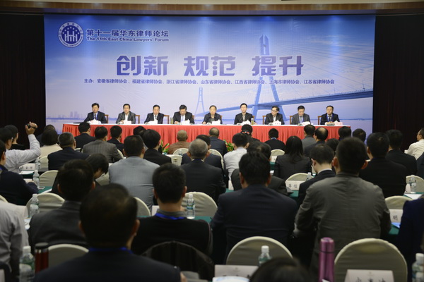 由上海市律師協會聯合江蘇、浙江、安徽、福建、山東、江西六省律師協會主辦,江蘇省律師協會承辦的第十一屆華東律師論壇11月2日在南京開幕。來自華東六省一市律師協會領導、優秀論文作者和江蘇蘇北五市律師代表約220名律師齊聚南京,相互交流律師行業管理經驗和律師業務理論成果,共同探索律師事務所規范化管理和律師業務拓展,建立華東律師相互合作交流機制,共享資源,協同發展。省司法廳副廳長、省律師協會黨委書記許同祿出席論壇并致辭。