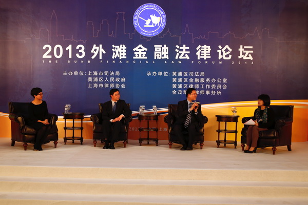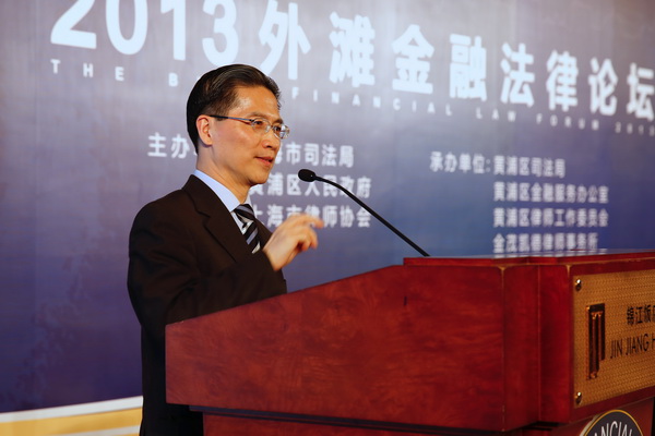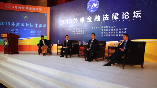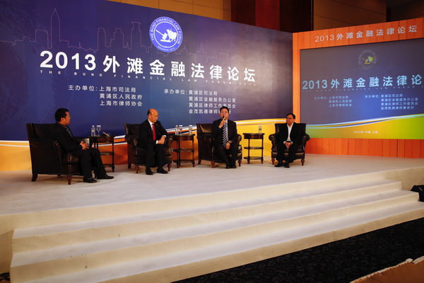 11月11日下午,由上海市司法局、黃浦區人民政府、上海市律師協會主辦,黃浦區司法局、區金融服務辦公室和上海金茂凱德律師事務所聯合承辦的“2013外灘金融法律論壇”在錦江小禮堂成功舉行。全國人大法律委員會副主任安建、民建中央副主席、上海市政協副主席周漢民、市司法局黨委書記、局長鄭善和、黃浦區區委書記周偉、區長彭崧、區人大主任施興忠、政協主席張華、副區長吳成、市律師協會會長盛雷鳴等領導出席了本次論壇。市國資委、市金融辦、市高級人民法院、證監局和上海上市公司協會和等相關部門領導,中外資銀行、保險公司、上交所、大型民營企業等企業家、金融家和中外知名律師等嘉賓200余人參加論壇。