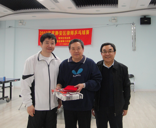 4月7日上午,“2012年度靜安區律師乒乓球賽”在區體育館隆重舉行,本次活動由靜安區律師工作委員會主辦,旨在豐富我區律師業余生活,舒緩業務工作壓力,提倡健康的生活方式。區司法局書記宋衛東、區司法局律師黨委書記汪慶華、區律工委主任唐勇、副主任安翊青均到場參加活動,宋衛東書記發表講話并為本次乒乓球賽開球。本次友誼賽共設男子單打、男子雙打及女子單打三個項目,共計30名選手參加比賽。最終來自榮業律師事務所的參賽隊伍一舉包攬男子單打、男子雙打冠軍,來自瑞澤律師事務所的胡敏奪得女子單打冠軍,宋書記、唐主任分別為獲獎選手頒發獎狀及獎品,并合影留念。