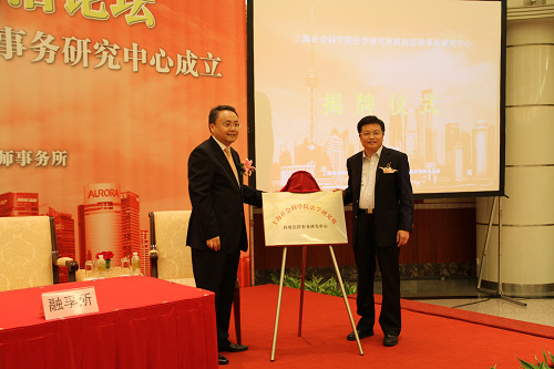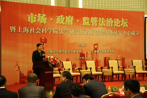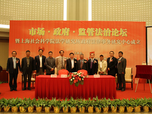 2011年10月31日,上海社科院法學所與融孚律師事務(wù)所在國際會議中心舉行共建“政府法律事務(wù)研究中心”簽約儀式和“中心”揭牌儀式。中心將聚集專家、學者、政府領(lǐng)導、大型企業(yè)高管、律師等開展以完善市場體系中的政府依法行政、公共政策制訂與評價、國資監(jiān)管、市場監(jiān)管、律師作為第三方提供服務(wù)、大型公共項目建設(shè)、運營等課題進行研究。儀式結(jié)束舉行的“市場·政府·監(jiān)管法治論壇”,來自社科院、華政和美國律所與融孚所的專家、學者、律師發(fā)表了政府對金融市場監(jiān)管的演講和研討,150余名政府工作人員、金融機構(gòu)人員、律師、學者、媒體記者等出席。