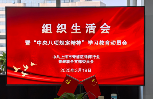 為深入貫徹落實黨的二十大和二十屆三中全會精神,進一步強化黨員律師的政治意識和紀律意識,推動全面從嚴治黨向基層延伸,青聚聯合黨支部于3月19日組織召開“中央八項規定精神”學習教育動員會。青聚聯合黨支部書記史明生主持會議,青浦區律師行業總支部委員會副書記張國華出席會議并講話,青聚聯合支部黨員律師參加會議。