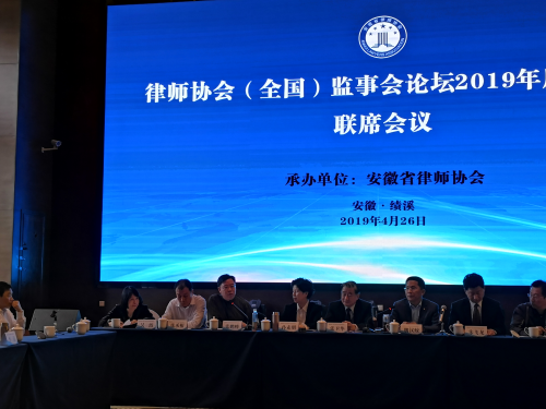 律師協會(全國)監事會論壇2019年度監事長聯席會議于4月26日在安徽舉行,來自全國20家論壇發起單位和成員單位律師協會的監事會代表共計60余人參加了會議。第十屆上海市律師協會監事長錢翊樑、新任第十一屆監事長張鵬峰以及辦公室主任陶麗萍參加了本次會議。