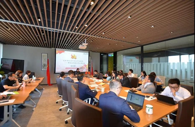 聯席會議結束后,君悅黨支部隆重舉行了紀念五四運動100周年主題黨日活動,支部副書記朱平晟擔任活動主持人。第一項內容為張偉華書記的《微黨課》,張書記精心準備了PPT,以“發揚傳統、勇于擔當、牢記使命——解讀如何踐行《中國共產黨支部工作條例》”為主題,講了三方面內容:一、發揚五四精神,堅定信念,服務祖國;二、支部條例為準則,制度保障為基礎;三、凝心聚力,共創君悅黨建新篇章。黨員們仔細聆聽,不時筆記,學習氛圍濃厚。