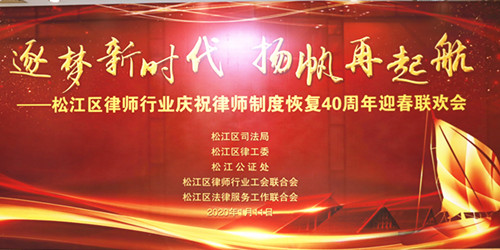 2020年1月11日,一場 “逐夢新時代、揚帆再起航”的松江區律師行業慶祝律師制度恢復40周年迎春聯歡會,在上海新暉大酒店二樓長江廳隆重舉行。區司法局局長莫桂興、松江區法學會會長楊宗貴、區五屆人大監察和司法委員會主任委員王建峰、區政協社會和法制委員會主任周文輝、區社會工作黨委副書記張娟等領導,以及近200名嘉賓及律師代表出席了慶祝活動,共慶律師制度恢復40周年,共迎新春。