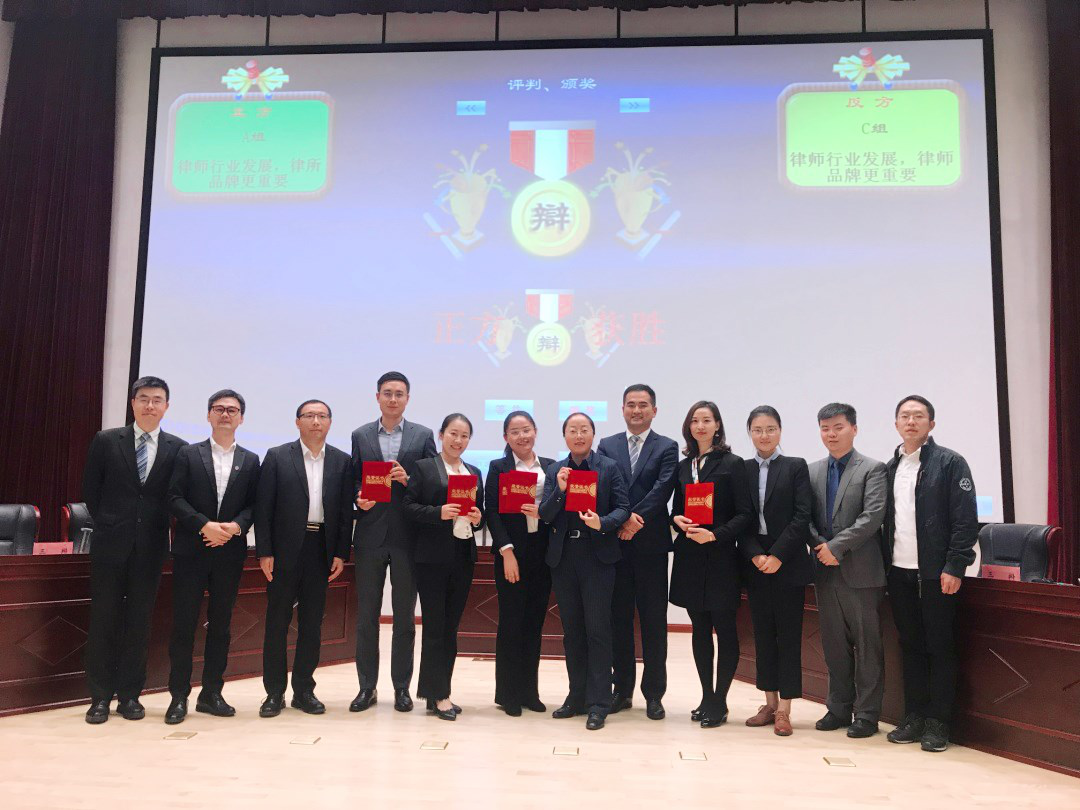 辯論賽是法律人的一項傳統活動。道理越辨越明、隊伍越練越強。四組成員初賽以“律師行業師徒傳承比青年律師個人奮斗更重要Vs律師行業青年律師個人奮斗比師徒傳承重要”以及“低價競爭是律師行業的正?,F象VS低價競爭不是律師行業的正常現象”為主題,決賽以“律師行業發展,律所品牌更重要VS律師行業發展,律師品牌更重要”為主題,決戰評出一支優勝隊以及兩位最佳辯手。辯論過程扣人心弦、高潮迭出、掌聲不斷;尤其是決賽環節,兩支隊伍勢均力敵、激烈搏擊,為觀眾呈現了一場高水平的辯論賽。辯手們只能在學習之余進行討論與準備,任務重、時間短,用不到四天的時間為大家呈現了一場如此精彩的辯論賽,確實讓人欽佩,嘆為高手。