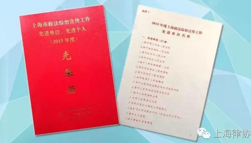 上海律協(xié)宣傳委獲“2015年度上海政法綜治宣傳工作先進(jìn)單位”榮譽(yù)稱號。這是上海律協(xié)宣傳委首次入榜!是唯一一家獲獎的政法系統(tǒng)行業(yè)協(xié)會。